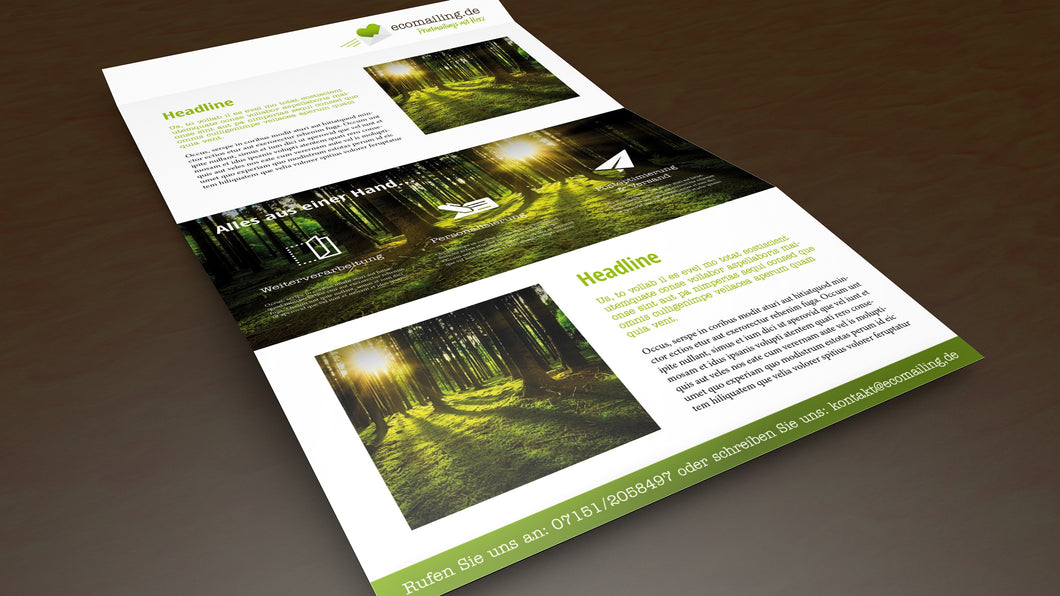 Ein Selfmailer ist eine Art des Mailings und dient unter anderem der Image- oder Produktwerbung. Unsere Selfmailer werden mit Gluespots verschlossen und somit wird auf eine Briefhülle verzichtet. In der Regel sind Selfmailer personalisiert, was während des Druckes oder bei der Weiterverarbeitung realisiert wird. Natürlich können Selfmailer ohne Personalisierung auch als Einleger, Beilage oder Wurfsendung verwendet werden.